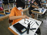 3年生では、書写(毛筆)の学習が、始まります。筆を使って文字を書くことは難しいですが、まずは筆遣いに慣れることが大切です。