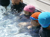 今日は絶好のプール開き日和りとなりました。青空の広がる空の下、元気に水泳の学習が始まりました。