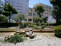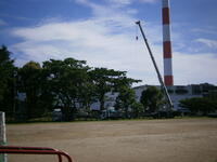 恒富小学校には、たくさんの樹木があり小鳥の森と呼ばれる場所があります。ここ数年、樹木が高くなりすぎたり、痛んだりする樹木が出てきています。その樹木を剪定していただいています。運動場にクレーン車等入っていますのでご注意ください。