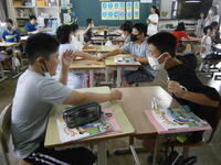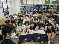 今日は、「絵本の広場」=「職員による読み聞かせ会」が行われました。本の題名を見て、自分が聞いてみたい絵本を選びその本の読み聞かせ会に参加すると言うものです。どの教室も楽し入り込んでいました入り込んでいました。