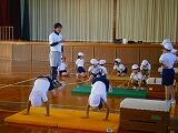 2年生の跳び箱遊びの様子です。今日はオリエンテーションとして、準備の仕方や補助運動について確認しました。跳び箱運動の基礎となる大切な学習です。楽しそうに学習していました。