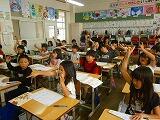 4年生は、ALTの先生、外国語専科の先生、スーパーティーチャーの3人と一緒に学習していました。うらやましい光景です。
