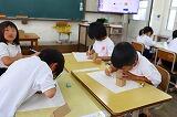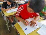 4年生は、三角形を描く練習をしていました。ずれないように正確に描くことは、難しいことです。これもくり返し練習することで身につきます。集中して取り組んでいました。