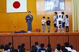 延岡市出身の落語家「桂 銀治」さんに本校へ来ていただき落語の表現について教えていただきました。体験コーナーでは6人の児童が落語の表現体験を行いました。みんな上手でした。最後に、落語も聞かせていただきとても素敵な時間を過ごすことができました。子どもたちもいい表情で笑っていました。