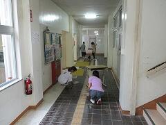 今朝はあいにくの雨でしたが、職員玄関や児童玄関など、雨の日も屋内でできる活動に取り組んでいました。