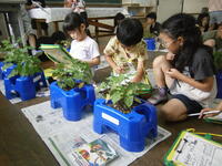1年生がアサガオの観察をしていました。まいた種が芽を出し、葉っぱがたくさんになってきています。きれいな花が咲くのが楽しみですね!一生懸命に葉っぱを観察していました。