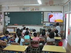 先生によって、絵本をテレビ画面に映して実施したり、実際の絵本を手に持って読み聞かせをしたりと形は違いましたが、子どもたちは、興味津々、目を輝かせながら、話を聞いていました。