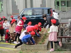 1年生は午前中、学級園に、チューリップの球根も植えました。