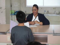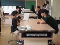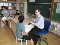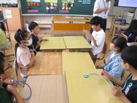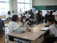 7月10日、6年生は、これまで学習してきた英会話を生かす活動を行いました。この日は、市内のALT4名に来ていただき、「理想の週末の過ごし方」について英語でALTの皆さんに紹介しました。1対1でのやりとりに緊張していましたが、一生懸命に内容を伝えようとしていました。