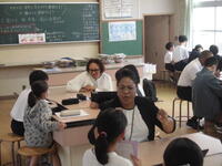5月29日、6年生は、これまで学習してきた英会話を生かす活動を行いました。この日は、市内のALT6名に来ていただき、6年生が自分の好きな食べ物などを紹介したり、ALTに質問したりしました。積極的に会話しようとする子どもたちをALTの方々に褒めていただきました。
