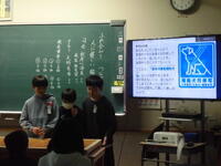 3月4日、5年生は総合的な学習の時間に「ふれあおう つながろう 人に優しい福祉の町」をテーマに取り組んできたことを各学級で発表しました。福祉に関わる人手不足、障がいのある人への配慮、盲導犬や点字ブロックなどについて発表しました。