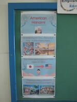 ALTの先生がアメリカ合衆国の文化を紹介するコーナーを設けています。4月は、アメリカの花見などについての掲示でした。