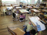 11月2日に県民一斉防災行動訓練「みやざきシェイクアウト」が実施されますが、本校では、行事の都合上、11月1日に行いました。事前(10月24日)に安全を確保する行動「低く、頭を守り、動かない」について指導を行い、当日を迎えました。子どもたちは、意識して行動できました。