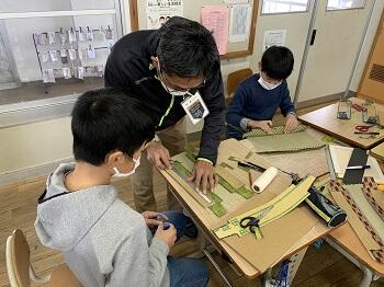 子どもたちは匠の方から指導を仰ぎながら、時のたつのを忘れるほど夢中になって製作に取り組んでいました。