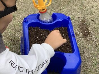 まき終わった子どもたちは、芽が出るのをとても楽しみにしているようでした。