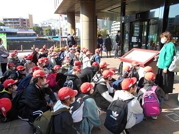 子どもたちは、学校外への避難ということで、少々緊張の面持ちでしたが、しっかりと安全を確認しながら避難場所へ移動していました。
