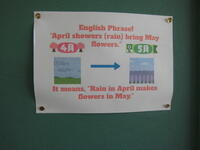 ALTの先生がアメリカ合衆国の文化を紹介するコーナーを設けています。4月は、アメリカの花見などについての掲示でした。