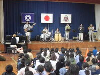 11月26日、ウイング・アンサンブルの皆さんをお招きして、音楽鑑賞教室「ラテンバンド コンサート」を開催しました。サンバ、チャチャチャ、マンボのリズムを紹介いただいた後、それぞれのリズムの曲を演奏していただきました。楽器紹介なども交え、たくさんの曲を演奏していただきました。