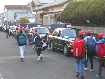 子どもたちは、学校外への避難ということで、少々緊張の面持ちでしたが、しっかりと安全を確認しながら避難場所へ移動していました。