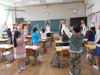 本校では、体づくりの一環として、音楽に合わせて簡単な体操をしています。4月19日は、1年生のために体育委員会の子どもたちが手本を示しました。1年生は楽しそうに取り組んでいました。