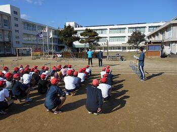 12月20日(火)の5時間目に、恒富中学校3年生(山崎さん、中村さん)による「陸上教室」が6年生に対して行われました。