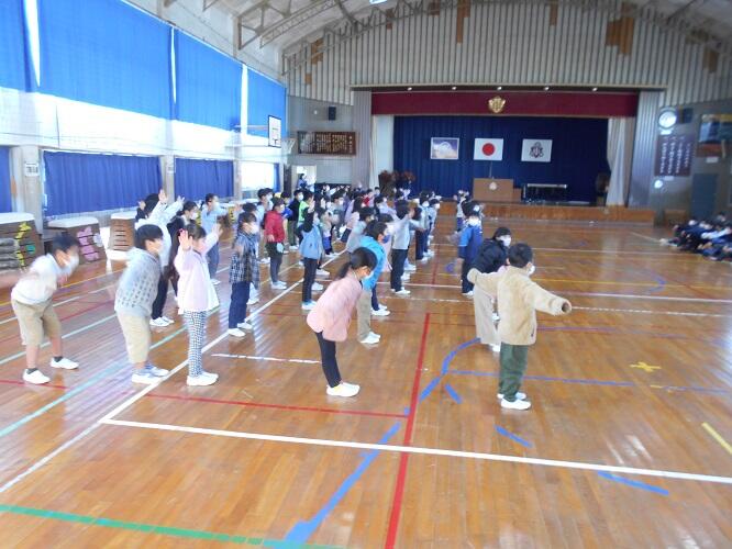 昨年度は、コロナ感染予防のために、思うような取組ができませんでした。今回は、体育館で行う各学年の発表については、昨年度同様に学年を入れ替えながら実施しましたが、昨年度できなかった交流遊びについては、校庭を使って全校で実施しました。