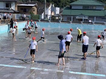 5月31日(月)はプール清掃でした。昨年度はコロナの関係でプールは使用していなかったので、2年間の汚れが溜まりに溜まっていました。特にコケがあちこちにこびりついていて、こすってもこすってもなかなか落ちそうにありませんでした。しかし、さすが6年生。あきらめることなく一生懸命に磨き、最後には以前と変わらない状態に仕上げてくれました。