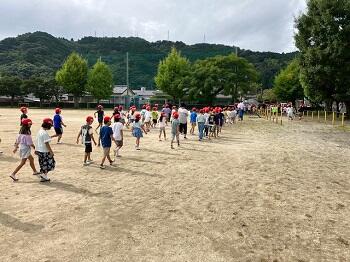 子どもたちは、学校外への避難ということで、少々緊張の面持ちでしたが、しっかりと安全を確認しながら避難場所へ移動していました。
