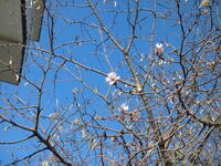 秋を感じるドングリですが、この時期には珍しく、北門の桜の木には花が数個咲いています。