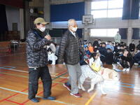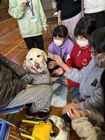 1月30日、5年生は、盲導犬協会の方などのご協をいただき、アイマスク体験、盲導犬との交流をしました。