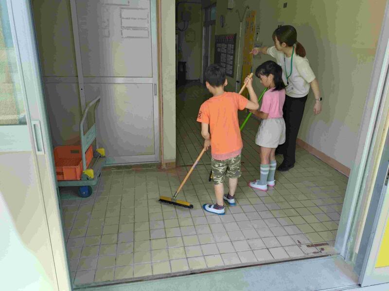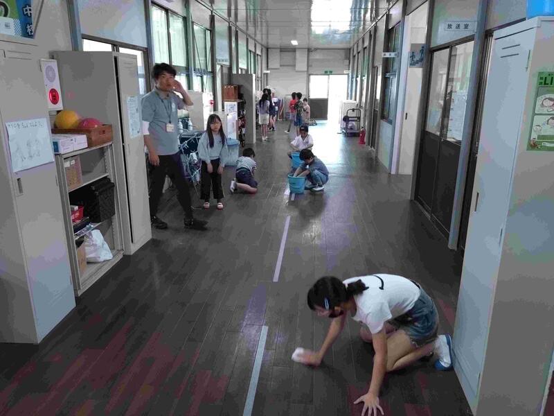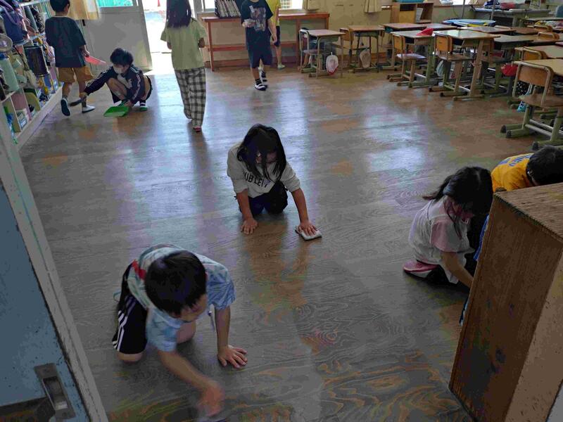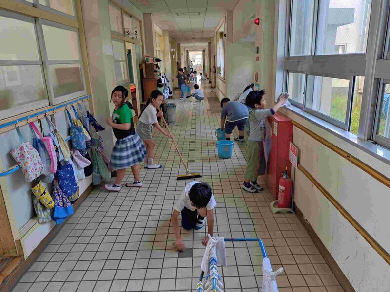 南っ子はおそうじも一生懸命がんばっています。無言で友達と協力しながら校舎内をきれいにしています。