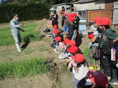 3年生は、片田町の牧野さんの畑をお借りして玉ねぎの苗を植えました。