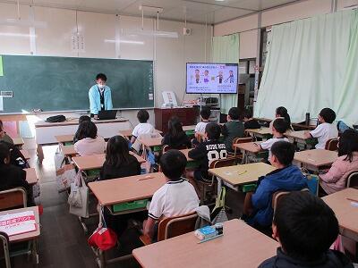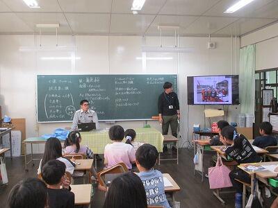 3年生は社会科で、消防署ではたらく人の仕事について学習しました。そのまとめとして実際に延岡市消防本部で働いている方に来ていただいて、救急隊や消防の仕事について詳しくお話を聞きました。子どもたちは署員の方の話を興味深く聞いて、市民の命を助ける大切な仕事をしているということを理解しました。