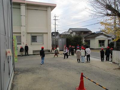 今回は地震のあとに、津波が発生し、高台へと避難する訓練を行いました。1~3年生は、学校西側のマンション駐車場へ、4~6年生は青朋高校へ避難しました。毎年、1回は訓練を行い、避難経路の確認や落ち着いて行動することの大切さを練習します。