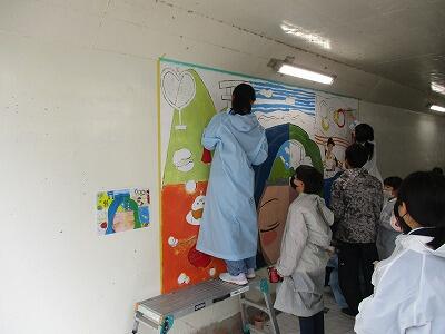 26日(木)は、青少年健全育成協議会主催の塩浜地下横断歩道の壁面に絵を描く活動「2024壁画プロジェクト」がありました。