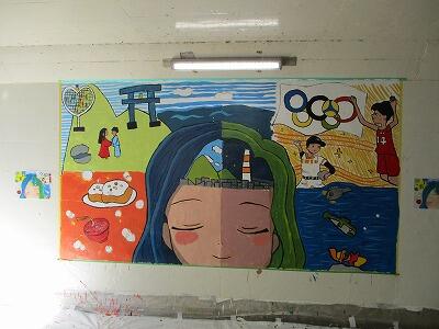 原案は南中学校の美術部が考案し、南小・緑小・南中の総勢20名で描き上げました。