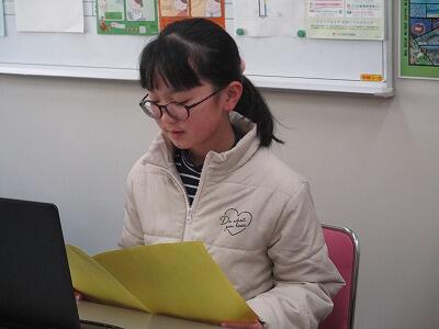 終業式では2・4・6年生の代表児童が2学期にがんばったことや3学期への目標などについて発表しました。3名の児童ともはきはきと自信をもって発表することができました。自分の立てた目標(めあて)をどれくらい達成できたか、一人一人が振り返り、3学期につなげてほしいです。