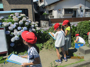 まず、近くの公園に行って、いろいろな大発見をしました。虫や花、鳥の巣、キノコなどいろいろな物をつぎつぎにみつけていました。