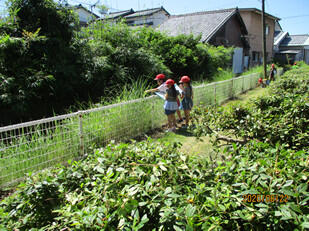 6月も下旬に入り、気温も暑い日が多くなりました。1年生のアサガオもつるが伸び、支柱を立てています。つぼみも少しずつついてきていて、いつ花が咲くのか楽しみです。