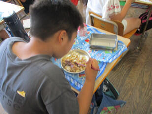 今日は、「うなぎの蒲焼き」でした。みんなおいしそうに食べていました。先日は、宮崎牛を使った「牛丼」もでました。