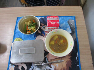 「新型コロナウイルス感染症対策緊急事業」を受け、県や市の関連事業により、宮崎県内の農畜産・水産物が給食に提供されていますが、今日は「みやざき牛」を使ったカレーがでました。
