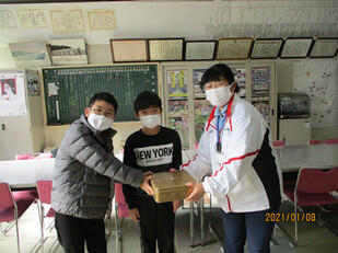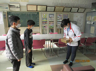 今日、校長室で、6年生の代表が、担当の方に渡しました。