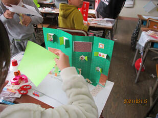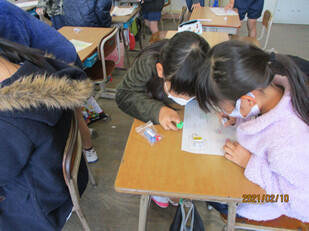 2年生が生活科で、進んでいく枠のところに産まれてから今までの中でも記憶に残ることを書いていくすごろくづくりをしています。