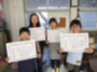 2学期に、自転車で転倒した女性を、いろいろ助けてくれた5年生3名と3年生1名が、2月8日(月)に延岡市の善行児童として表彰されました。