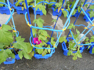 ピーマン、オクラはかわいい花が咲き始めました。ナスは花だけでなく、実も少しずつ大きくなっています。