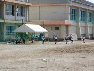雨が続いてしばらく運動場で体育ができませんでしたが、今日は久しぶりに気持ちの良い青空が見られました。