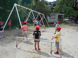 1・2年生が大好きなブランコですが、ボールを取りに来た人やおにごっこに夢中になった人が近づき、危ないことがありました。
