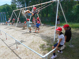 市の教育委員会が夏休み中にブランコ周りに仕切りをつくってくださいました。