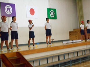 今日の始業式は、2学期がんばることを2年生、4年生、3年生の3名が発表してくれました。