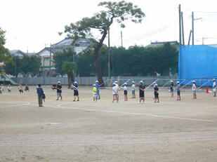 朝は、雨を降らず、リーダーの人たちが一生懸命練習をしていました。下級生の人も運動場や教室の窓から、その姿を見ていました。